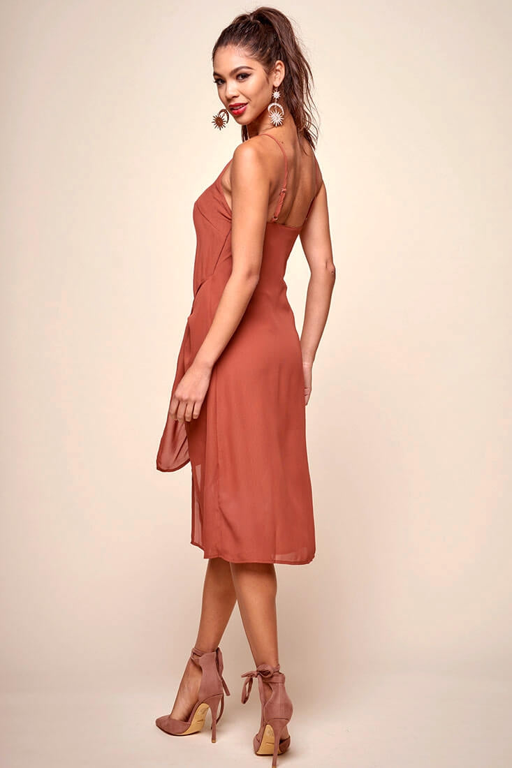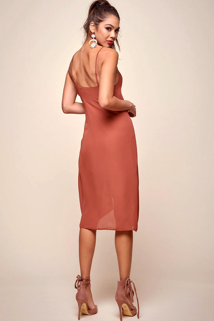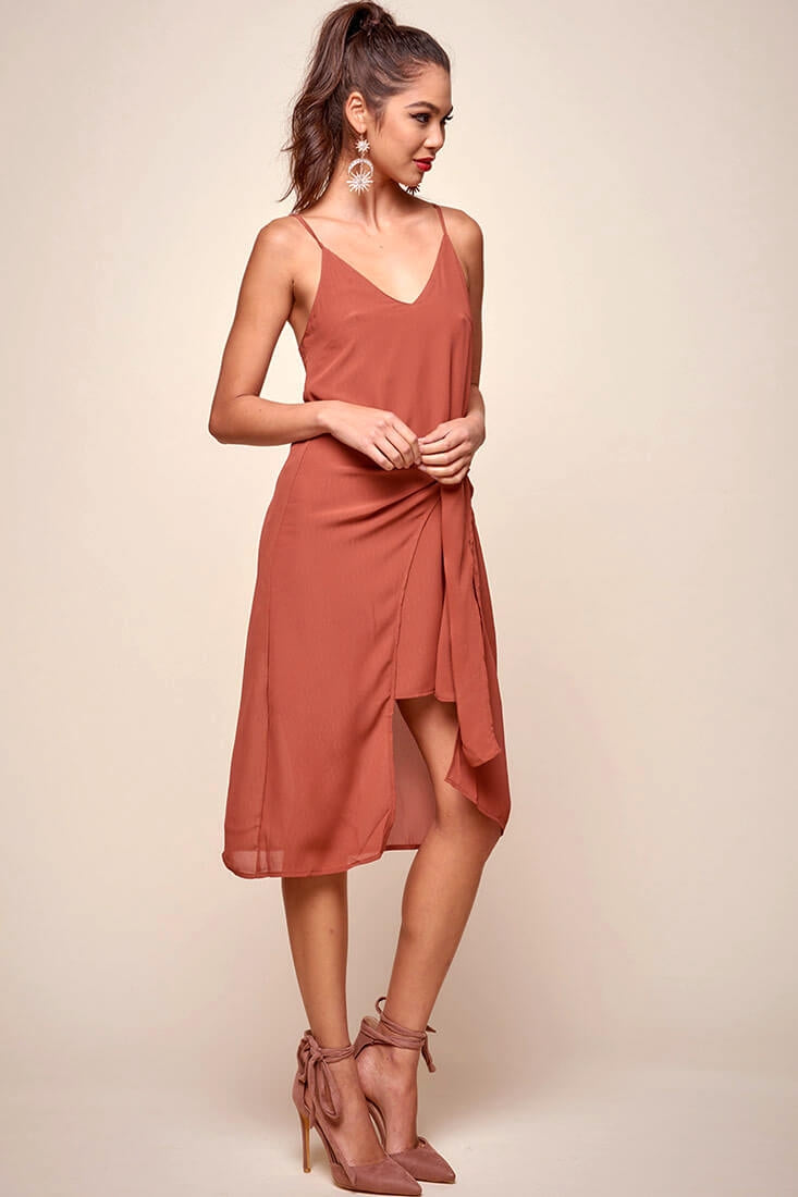 Allyson Waist Tie Slip Dress Rust