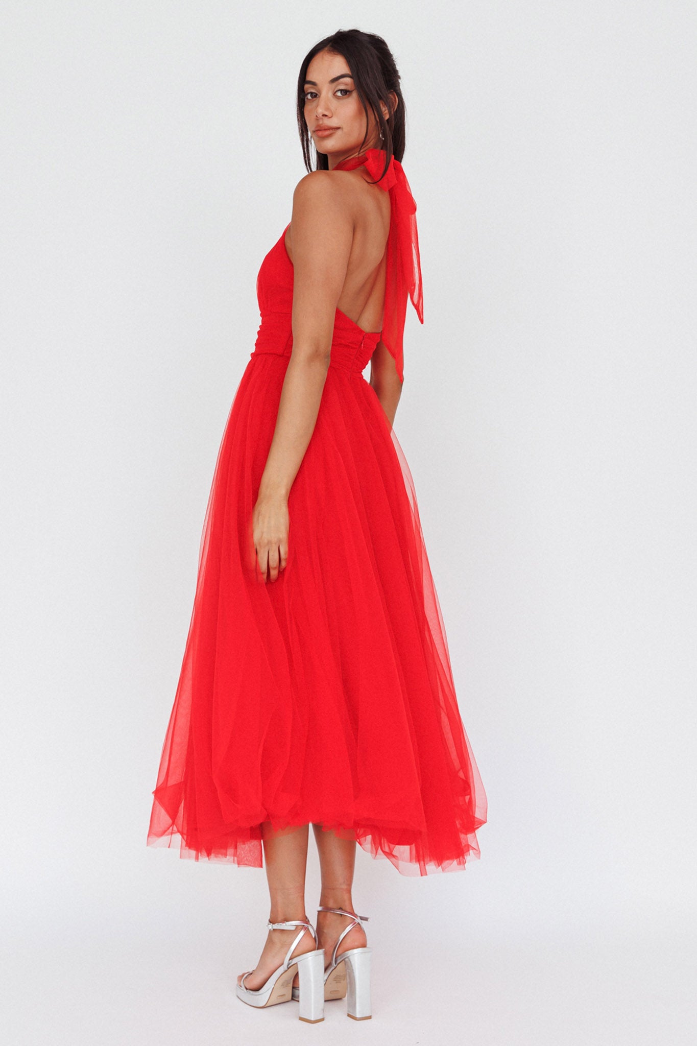 You'll feel like a princess in our stunning Andria midi dress. Perfect for a wedding or special occasion where you need to look like literal royalty. We are obsessed with its romantic tulle and gorgeous high-neck halterneck. Team it with diamante heels and a satin clutch for a look that'll leave Prince Charming speechless.